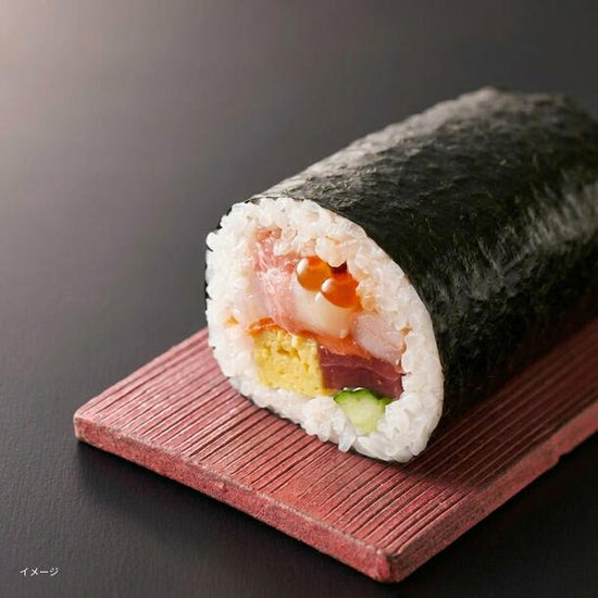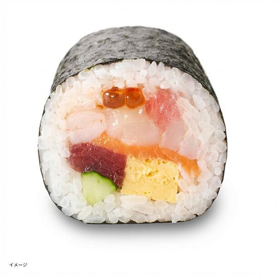 まぐろ、海老、玉子焼、サーモン、ねぎまぐろ、いか、きゅうりを使用。彩り豊かな具材を特製の酢飯と磯の香り豊かな有明海産海苔で丁寧に巻き上げました。