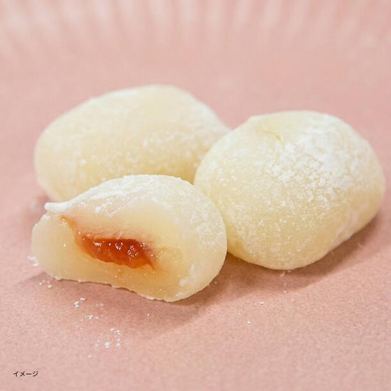 羽二重餅の製法で蒸した餅粉に、水あめや砂糖を加えて練り上げた求肥を使用しています。特製ジャムをやさしく包み込んだ、こだわりの一品です。