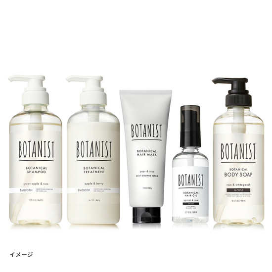 【ボタニスト ボタニカルトリートメント スムース 】水、セタノール、ジメチコン、グリセリン、DPG、ベヘントリモニウムクロリド、アボカド油、シラカンバ樹液、ガラクトミセス/シラカンバ樹液発酵液、マカデミアナッツ脂肪酸フィトステリル、加水分解野菜タンパク、トウミツ、スフィンゴ糖脂質、グリチルリチン酸2K、ブドウ種子エキス、テルミナリアフェルジナンジアナ果実エキス、ホホバ種子油、ヨーロッパキイチゴ果実エキス、酒粕エキス、加水分解ヒアルロン酸、セラミドNG、加水分解ケラチン(羊毛)、アルギニン、ヒアルロン酸Na、イソアルキル(C10-40)アミドプロピルエチルジモニウムエトサルフェート、リンゴ酸、PEG-30フィトステロール、水添レシチン、フィトステロールズ、水添リゾレシチン、イソステアリン酸イソステアリル、ジリノール酸ジイソプロピル、BG、PPG-4セテス-20、PEG-40水添ヒマシ油、ペンチレングリコール、ヘキシレングリコール、ジステアリルジモニウムクロリド、ベヘントリモニウムメトサルフェート、ステアルトリモニウムクロリド、アモジメチコン、乳酸、EDTA-2Na、エタノール、イソプロパノール、トコフェロール、安息香酸Na、香料