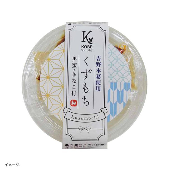 吉野本葛を使用したくずもち黒蜜ときなこが別添えで付いています。お好みの量をかけて、風味豊かな味わいをお楽しみください。