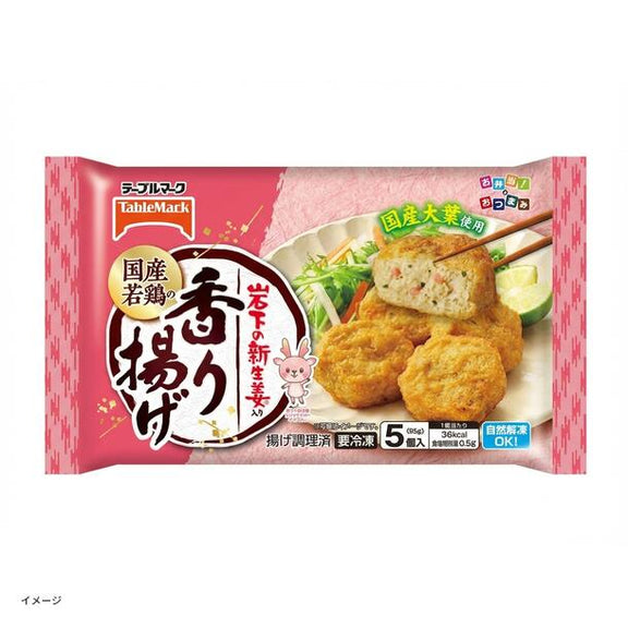 岩下の新生姜入り香り揚げ国産若鶏のむね肉と岩下の新生姜と国産大葉を混ぜ合わせてカラッと揚げました。岩下の新生姜の食感と風味、大葉の爽やかな味わいが口いっぱいに広がるお弁当にもおつまみにも合う一品です。