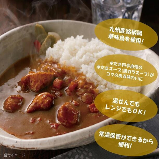 九州産銘柄鶏「華味鳥」と、水たき料亭自慢の水たきスープ(鶏ガラスープ)を使用することで、コクのある味わいに仕上げました。湯せんでもレンジでも調理可能。常温保管ができるため、ストックにも便利です。