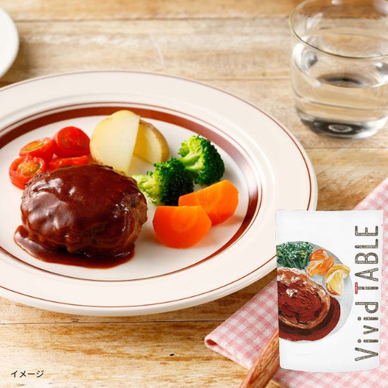 果実味のあるデミグラスソースを絡ませた野菜たっぷりの軽やかなハンバーグです。